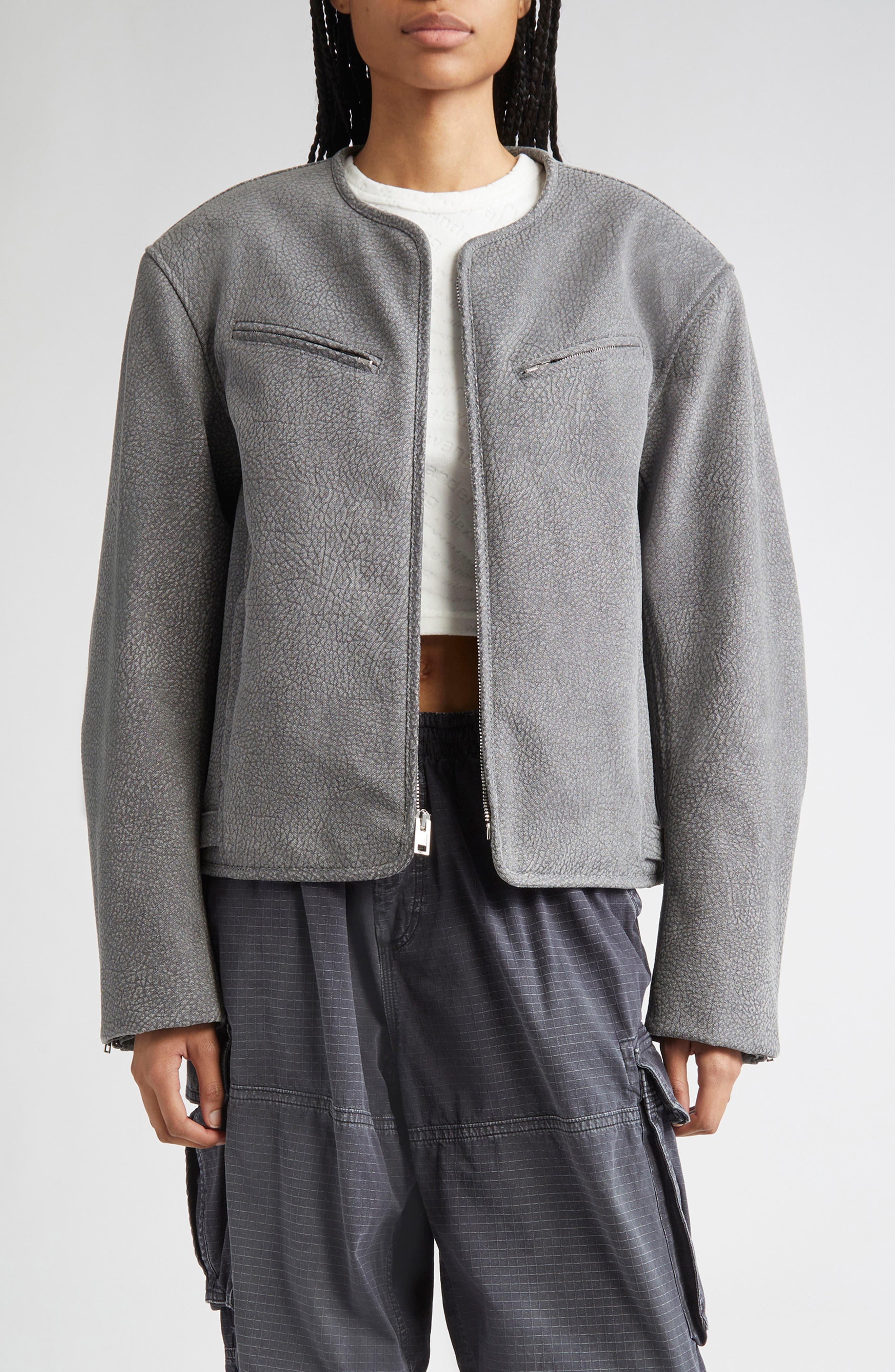 Alexander Wang Boxy Cotton Moto Jacket in Grey at Nordstrom
