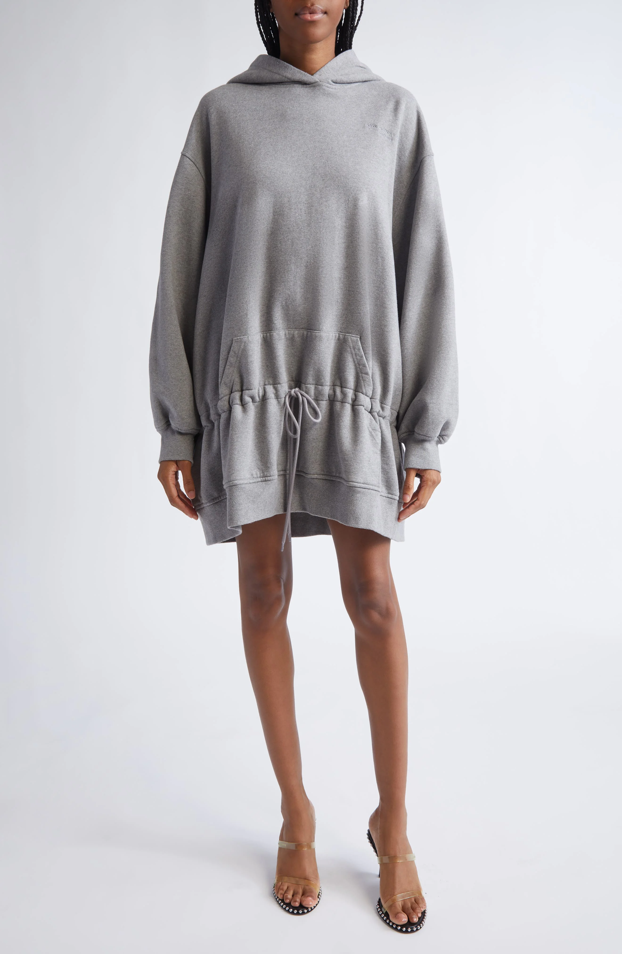 A drawstring-cinched dropped waist brings volume to this slouchy sweatshirt-dress made from cozy cotton fleece. Wear it alone or layer it over a longer piece, as shown on the resort '26 runway. Fixed hood Ribbed cuffs and hem Kangaroo pocket; side-seam pockets Dropped shoulders Drawstring waist 100% cotton Dry clean or machine wash, tumble dry Made in Portugal Designer Clothing