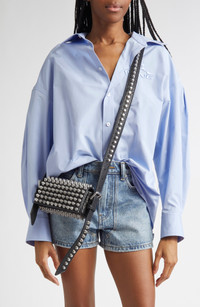 Brushed-metal trapezoidal studs—a new icon in Wang's detailing toolkit—punctuate this scaled-down bag made from lambskin leather in an exaggerated grain. A removable top handle and crossbody strap—both adjustable—give you plenty of carrying options. Magnetic-snap flap closure Removable, adjustable top handle; removable, adjustable crossbody strap Interior card slot Structured silhouette with flat base and protective metal feet Logo-jacquard lining Leather Imported Designer Handbags