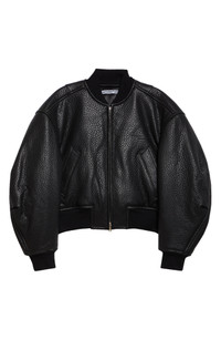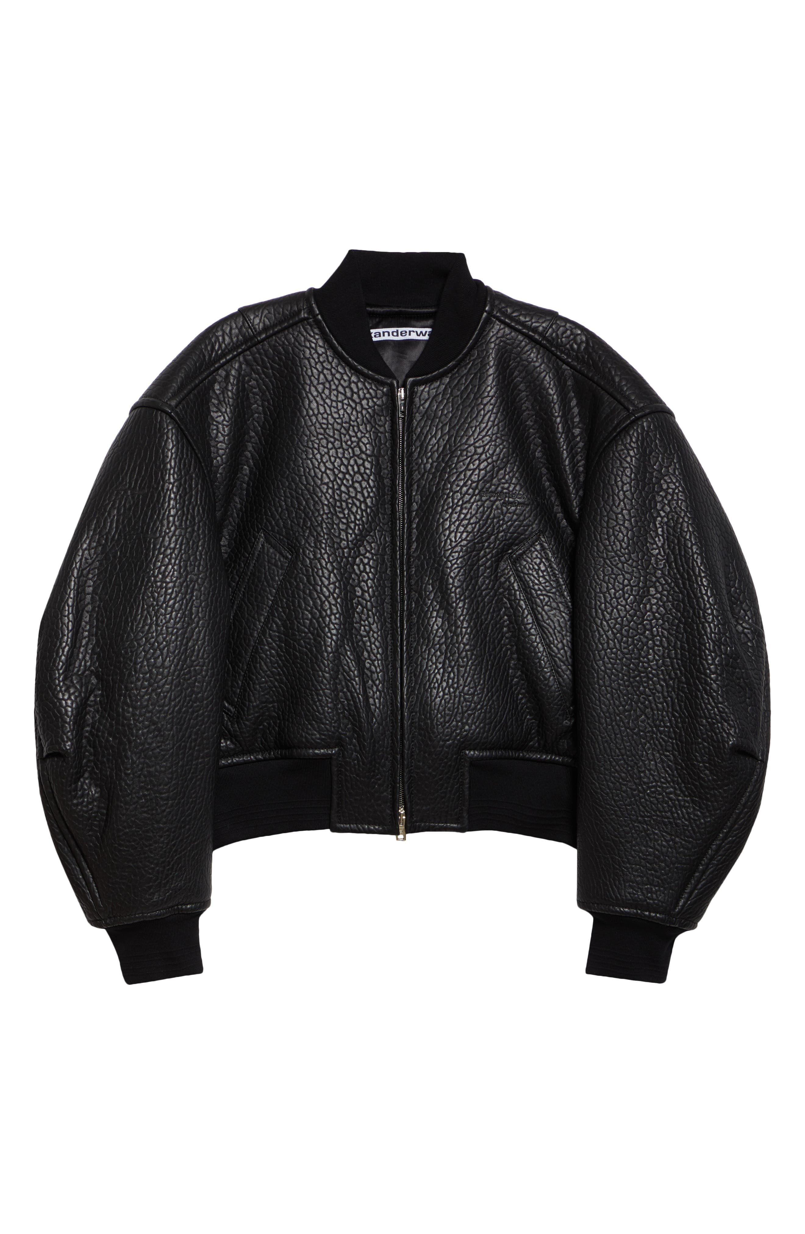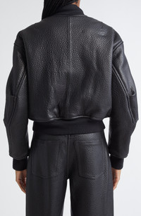 A featured style from Wang's resort '25 collection, this hemispherically shaped insulated bomber jacket is tailored from lambskin leather with a highly amplified grain that, though black, has an eye-catching way of playing with the light. Two-way front-zip closure Blade collar Dropped shoulders Side welt pockets Ribbed cuffs and hem Lined, with 100% polyester fill Leather with 75% wool, 23% nylon, 2% elastane Professional leather clean Made in China Designer Clothing