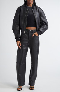 Alexander Wang Primal Lambskin Leather Crop Bomber Jacket in Black at Nordstrom
