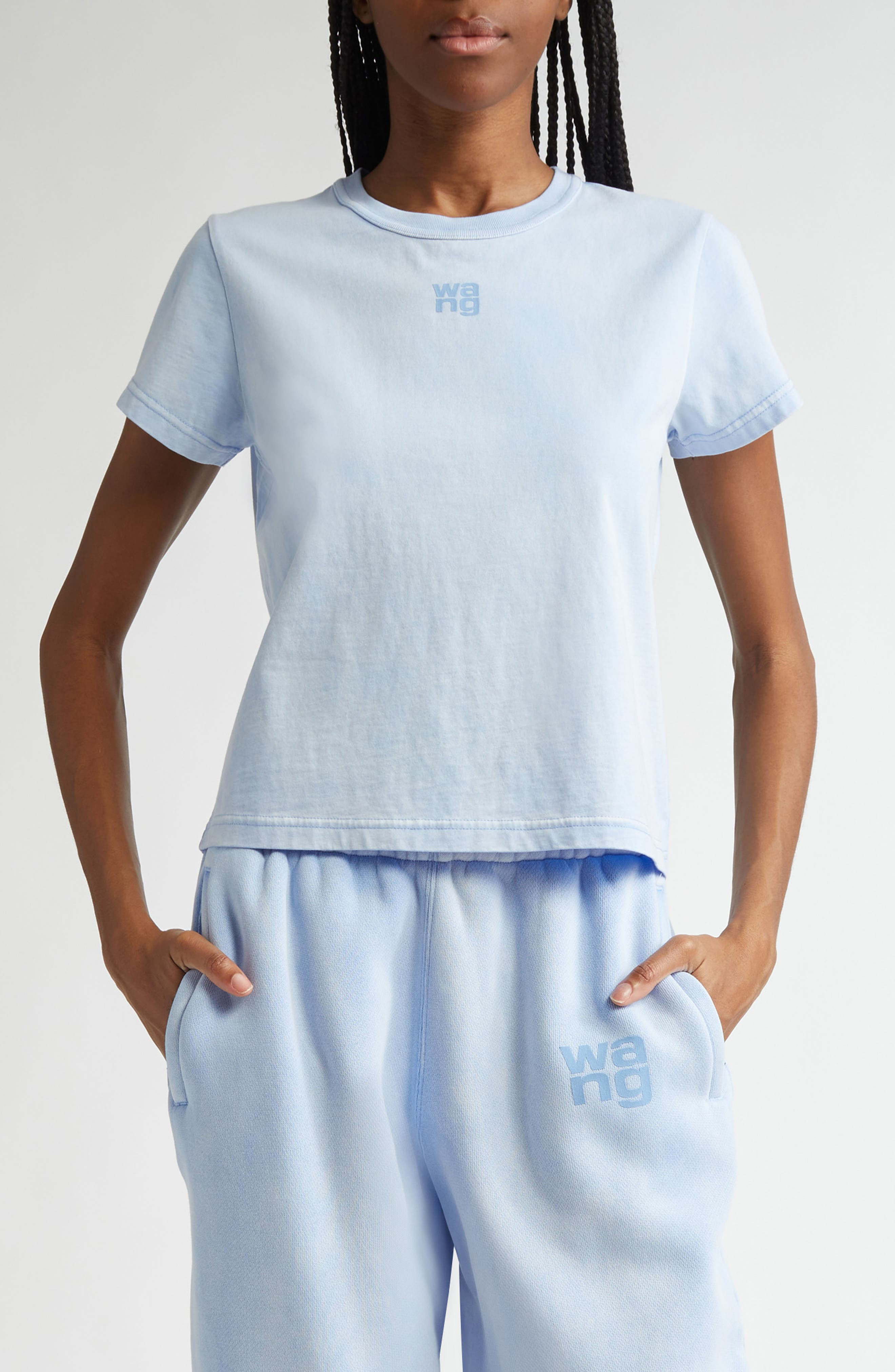 Alexander Wang Puff Logo Shrunken Cotton Jersey T-Shirt in Washed Pale Blue at Nordstrom