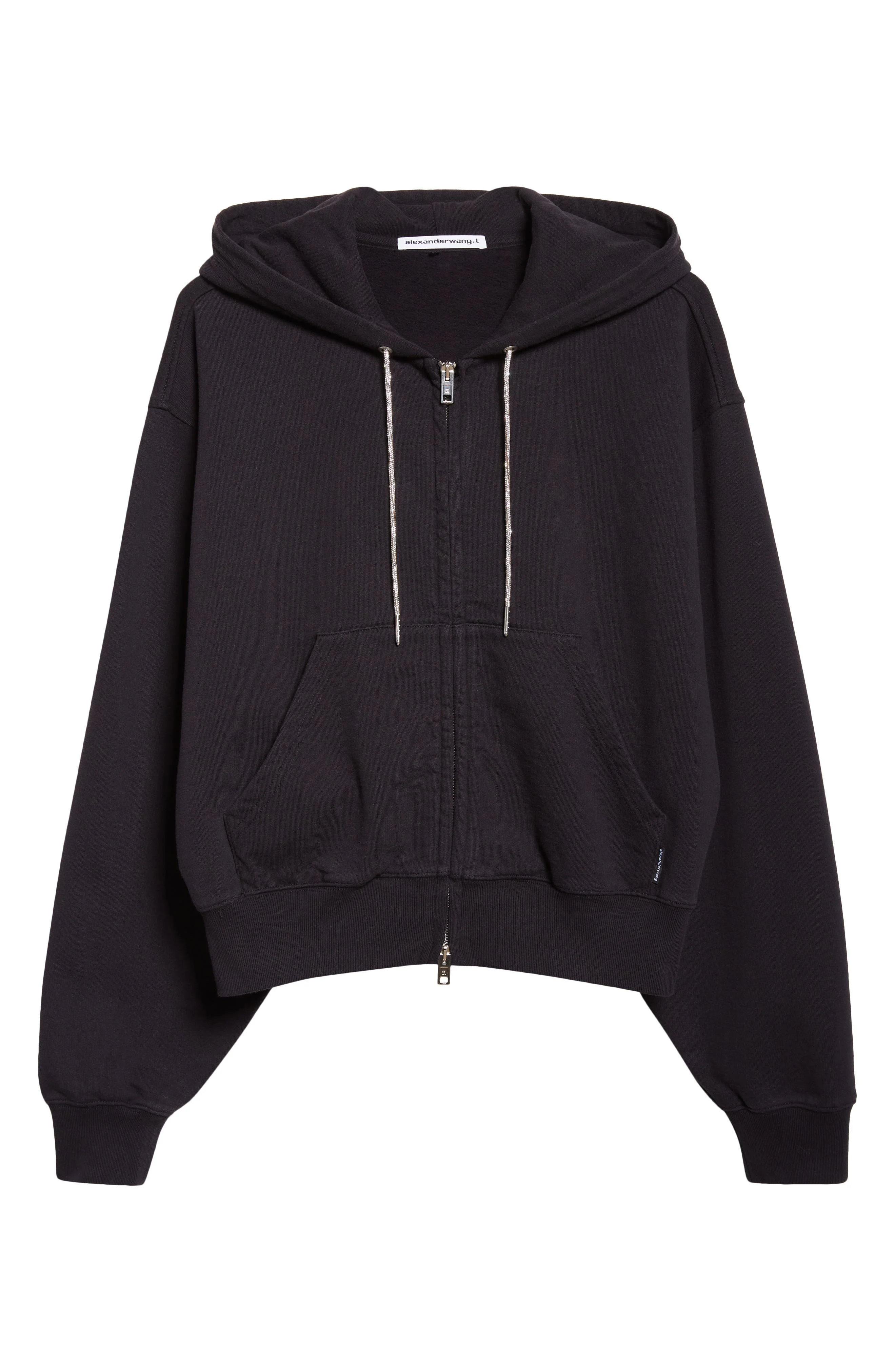 Alexander Wang Rhinestone Drawstring Zip Hoodie in Black at Nordstrom