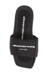 Alexander Wang makes a splash introducing the famed sharp square toe on a nylon-and-neoprene pool slide set with debossed branding across the strap. Textile and synthetic upper/textile lining/rubber sole Imported Women's Designer Shoes