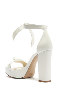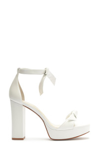 The label's signature Clarita bow crowns the ankle strap and toe of this minimalist leather sandal lofted on a block heel and platform. 4 1/4" (110mm) heel Ankle strap with tie closure Leather upper, lining and sole Made in Brazil Designer Shoes
