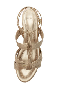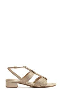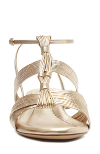 The Olga sandal is a new silhouette from the Brazilian label that's handcrafted by skilled artisans with delicately interlaced strings of soft metallic leather that merge elegance and artistry. The low block heel adds subtle height while providing greater stability and distributing weight more evenly. 1" (30mm) heel Adjustable strap with buckle closure Leather upper, lining and sole Made in Brazil Designer Shoes
