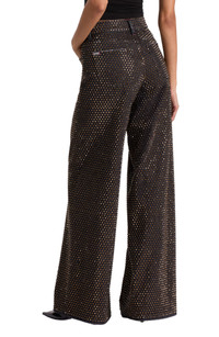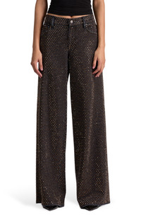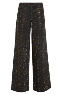 Make denim day dazzle with roomy, wide-legged jeans designed with a touch of stretch and showered in sparkling studs. Zip fly with button closure Five-pocket style 98% cotton, 2% elastane Dry clean Imported