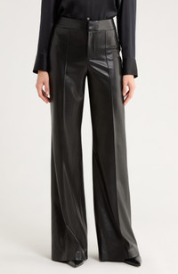 The retro verve of flare-leg pants gets an edgy update in this high-waist pair crafted from soft faux leather with all the supple swagger of the real deal. Zip fly with hook-and-bar closure Back welt pockets 100% polyester with polyurethane coating Dry clean Imported