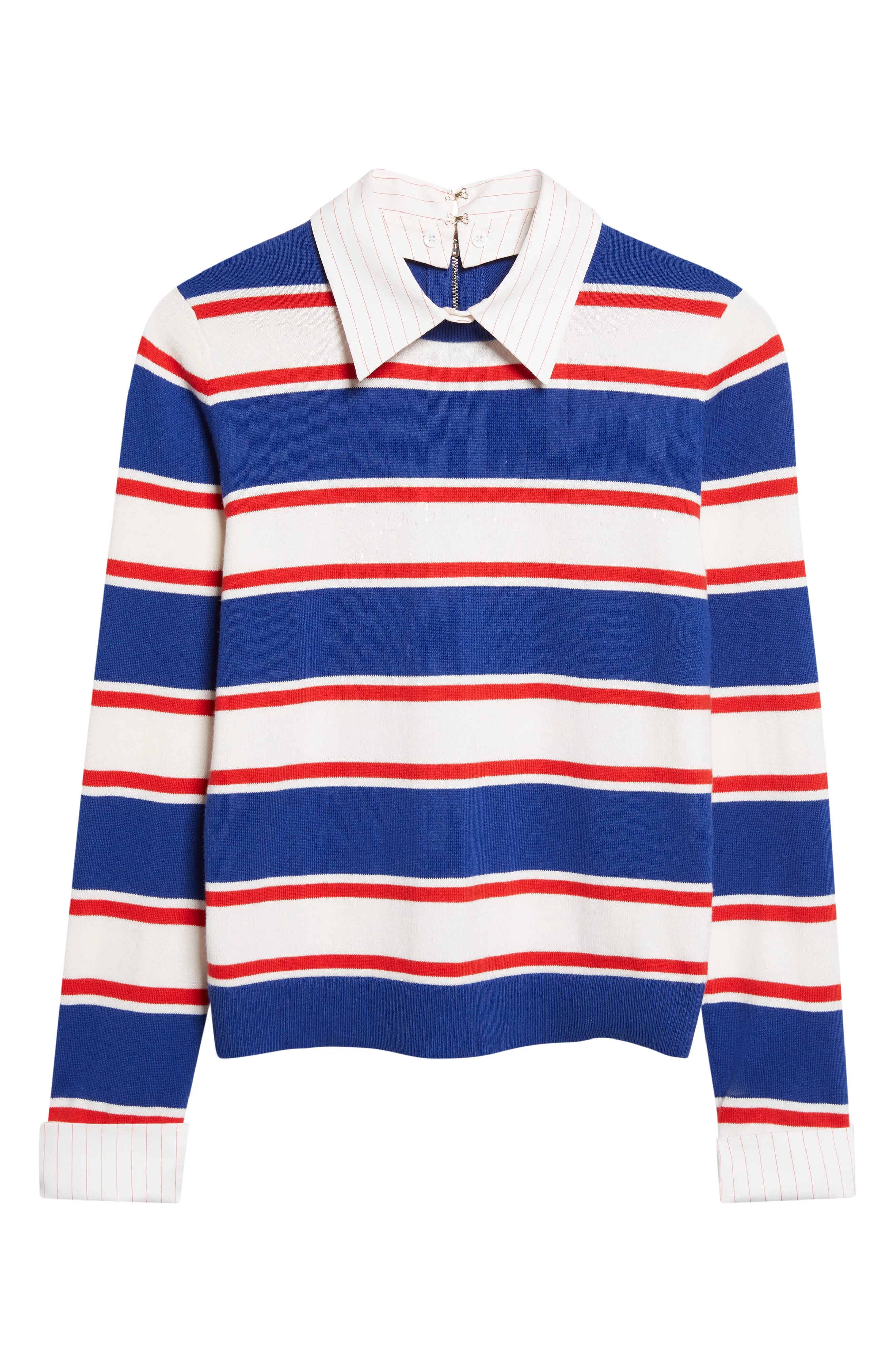 Alice + Olivia Porla Collared Stripe Cotton Blend Sweater in Americana Stripe at Nordstrom