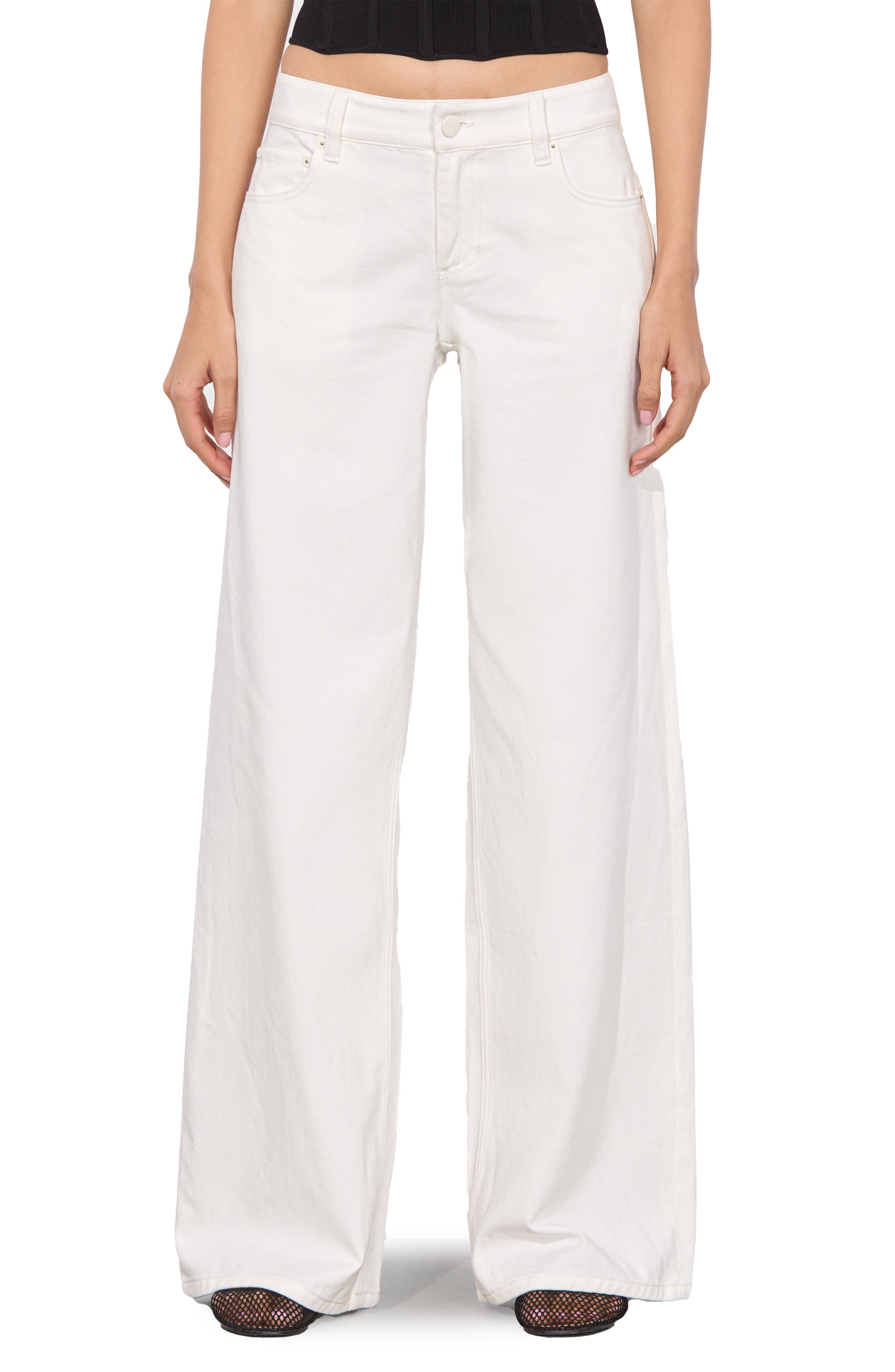 Alice + Olivia Trish Low Rise Baggy Jeans in Off White at Nordstrom