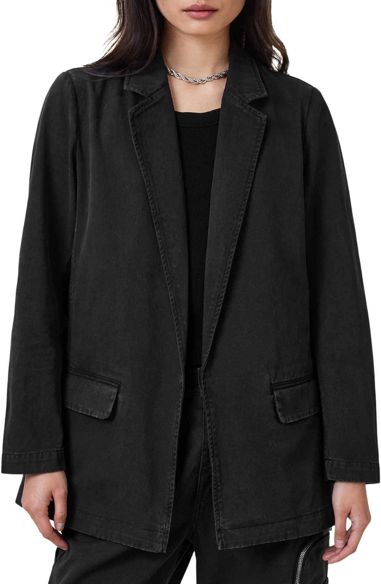 AllSaints Aleida Denim Blazer in Washed Black at Nordstrom