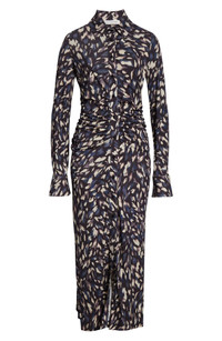 Altuzarra Claudia Print Ruched Long Sleeve Jersey Shirtdress in Black Animal at Nordstrom