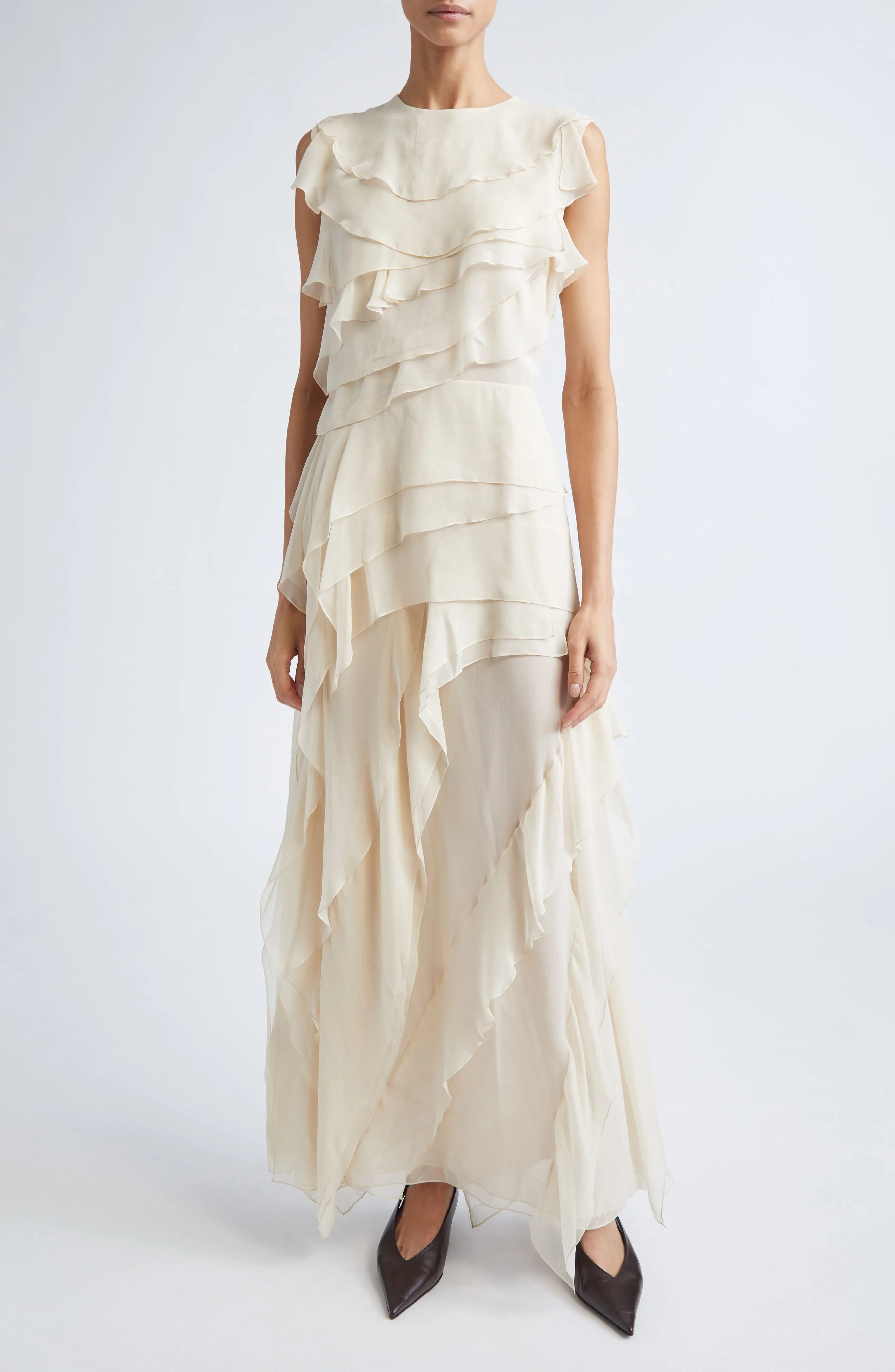 Altuzarra Gigi Semisheer Ruffle Silk Maxi Dress in Tapioca at Nordstrom