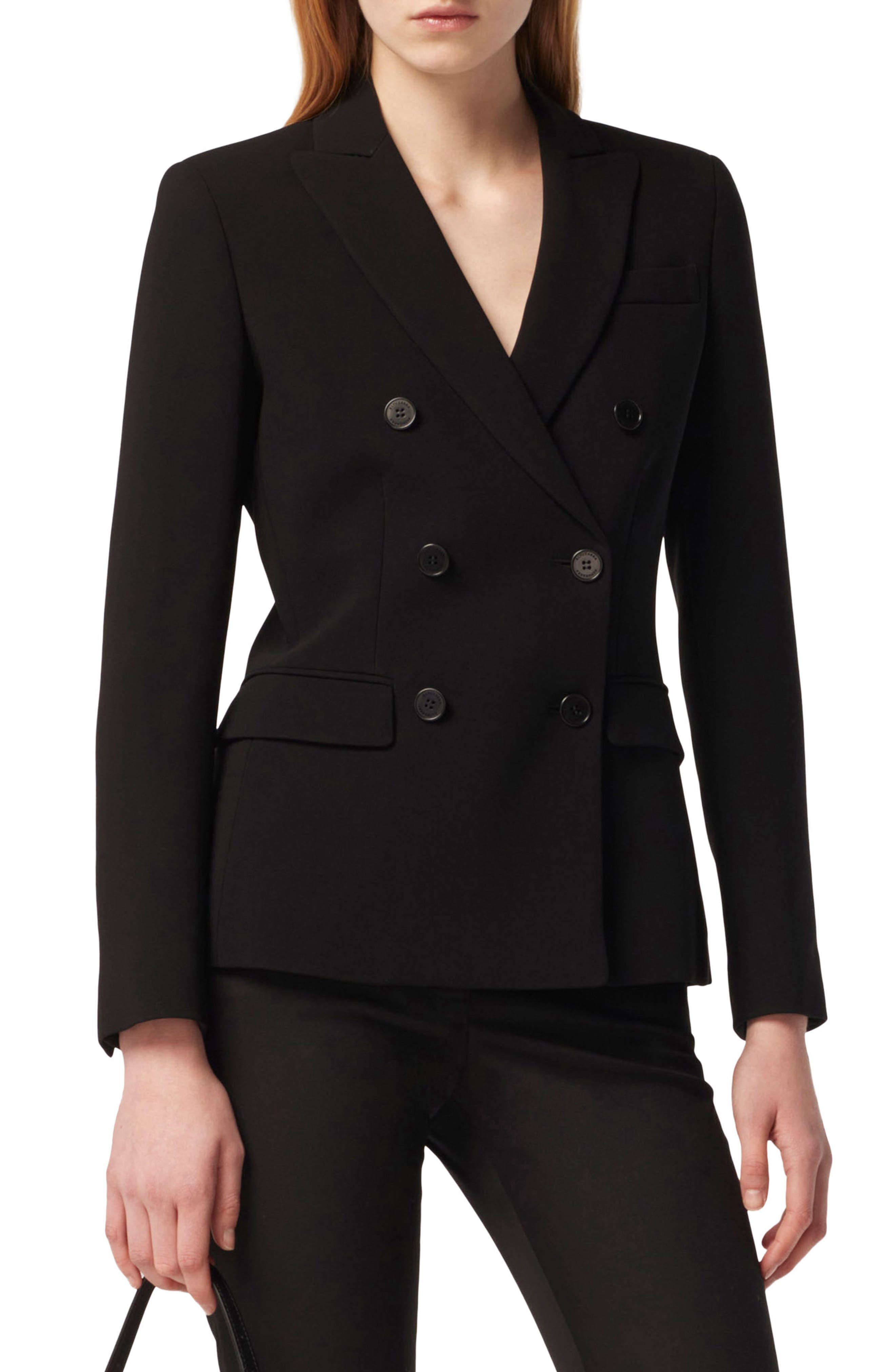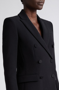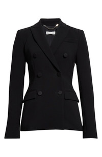 This perfectly tailored blazer made from wrinkle-resistant Italian twill is framed by signature structured shoulders. 27" length (size 40FR) Double-breasted button closure Peaked lapels Three-button cuffs Chest welt pocket; front flap pockets Lined 69% triacetate, 31% polyester Dry clean Made in Italy Designer Clothing