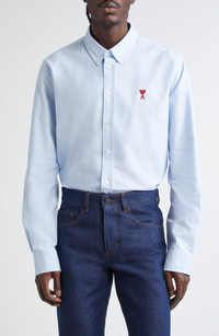 AMI PARIS Ami De Coeur Cotton Oxford Button-Down Shirt in 450 Bleu Ciel at Nordstrom