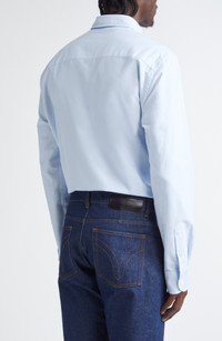 Ace-of-hearts chain-stitch embroidery—a play on founder Alexandre Mattiussi's monogram—deals a winning look to this button-down shirt cut from cotton oxford. 29 1/2" length; 46" chest (size Medium) Front button closure Button-down collar Long sleeves with button cuffs 100% cotton Dry clean or machine wash, dry flat Imported Designer Clothing