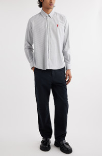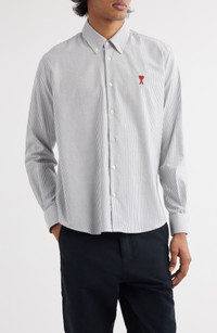 AMI PARIS Ami de Coeur Stripe Cotton Oxford Button-Down Shirt in Black/natural White/039 at Nordstro