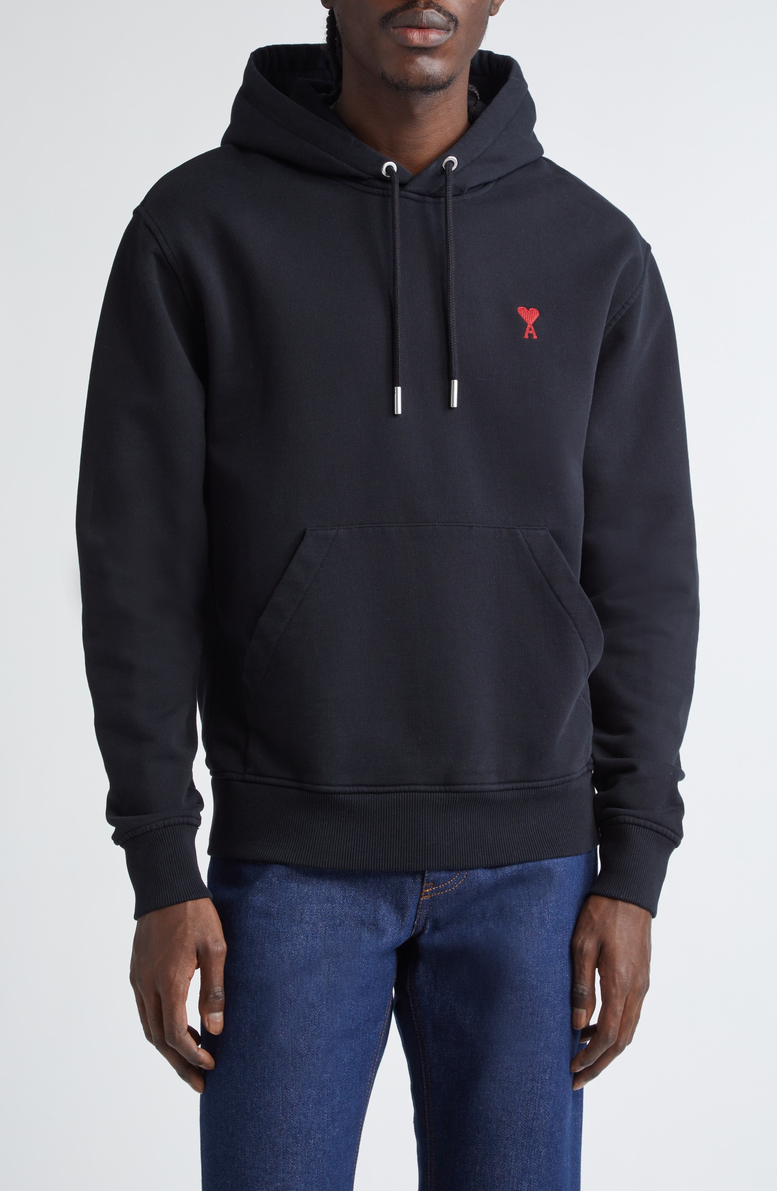 AMI PARIS Embroidered Ami De Coeur Cotton Hoodie in 001 Noir at Nordstrom