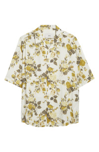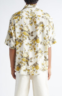 A blurred rose print brings a botanical focus to this wardrobe-staple camp shirt detailed with understated logo embroidery and mother-of-pearl buttons. Front button closure Notched collar Short sleeves 100% viscose Dry clean Made in Portugal Designer Clothing
