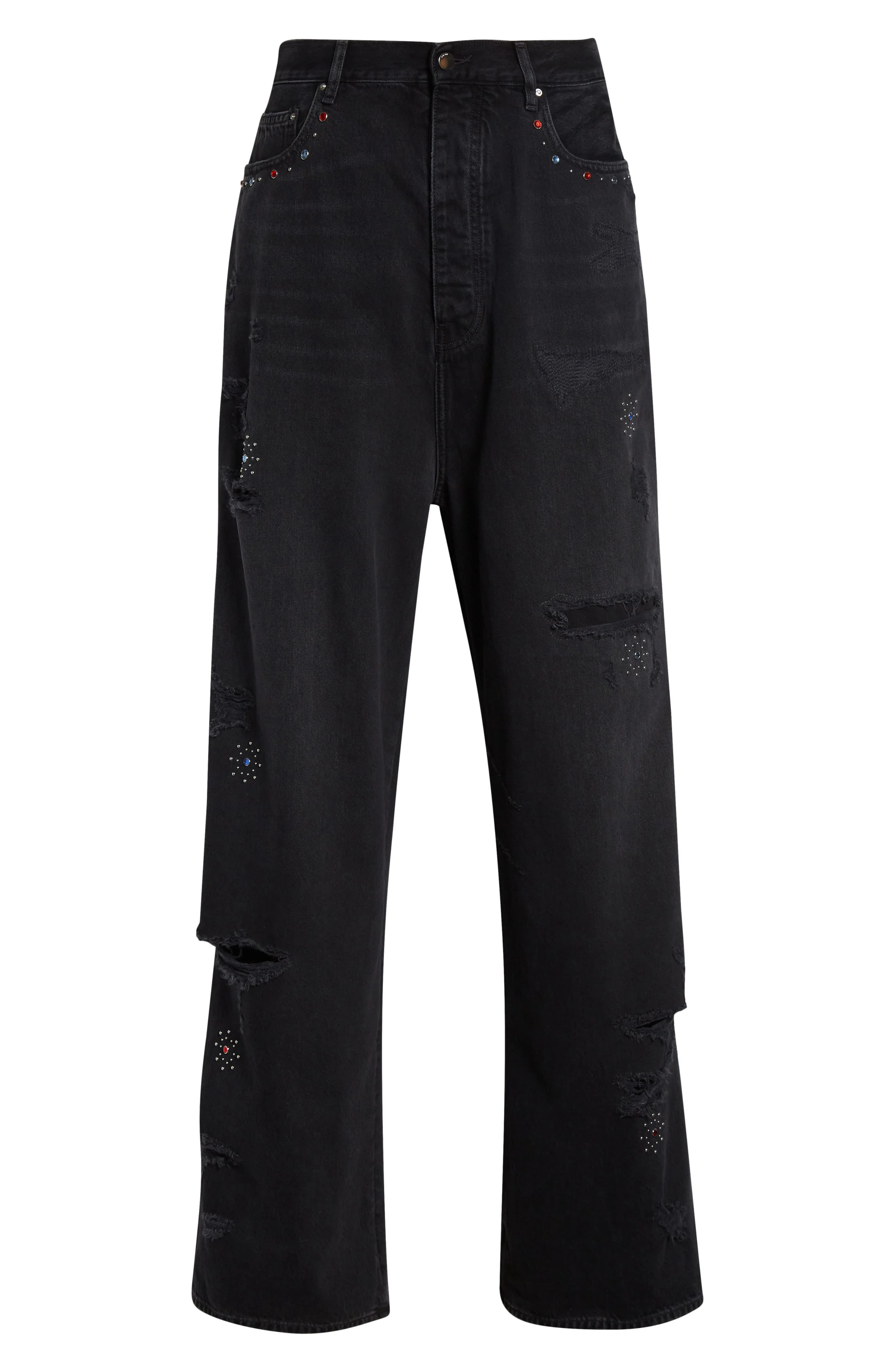 AMIRI Bones Studded Rip & Repair Baggy Jeans in Vintage Black at Nordstrom