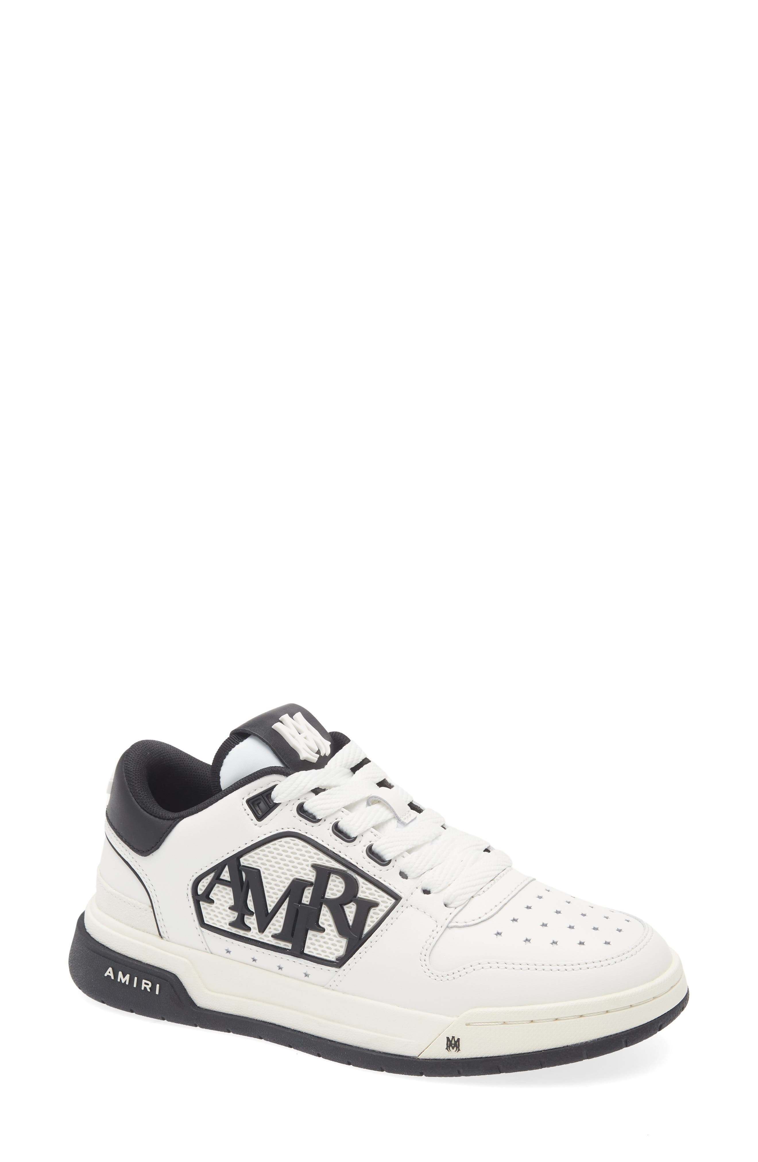 AMIRI adds a new sneaker to their lineup with this low-top style that features a rubberized logo and tiny star-shaped perforations. Lace-up style Leather upper/textile lining/synthetic sole Imported Designer Shoes
