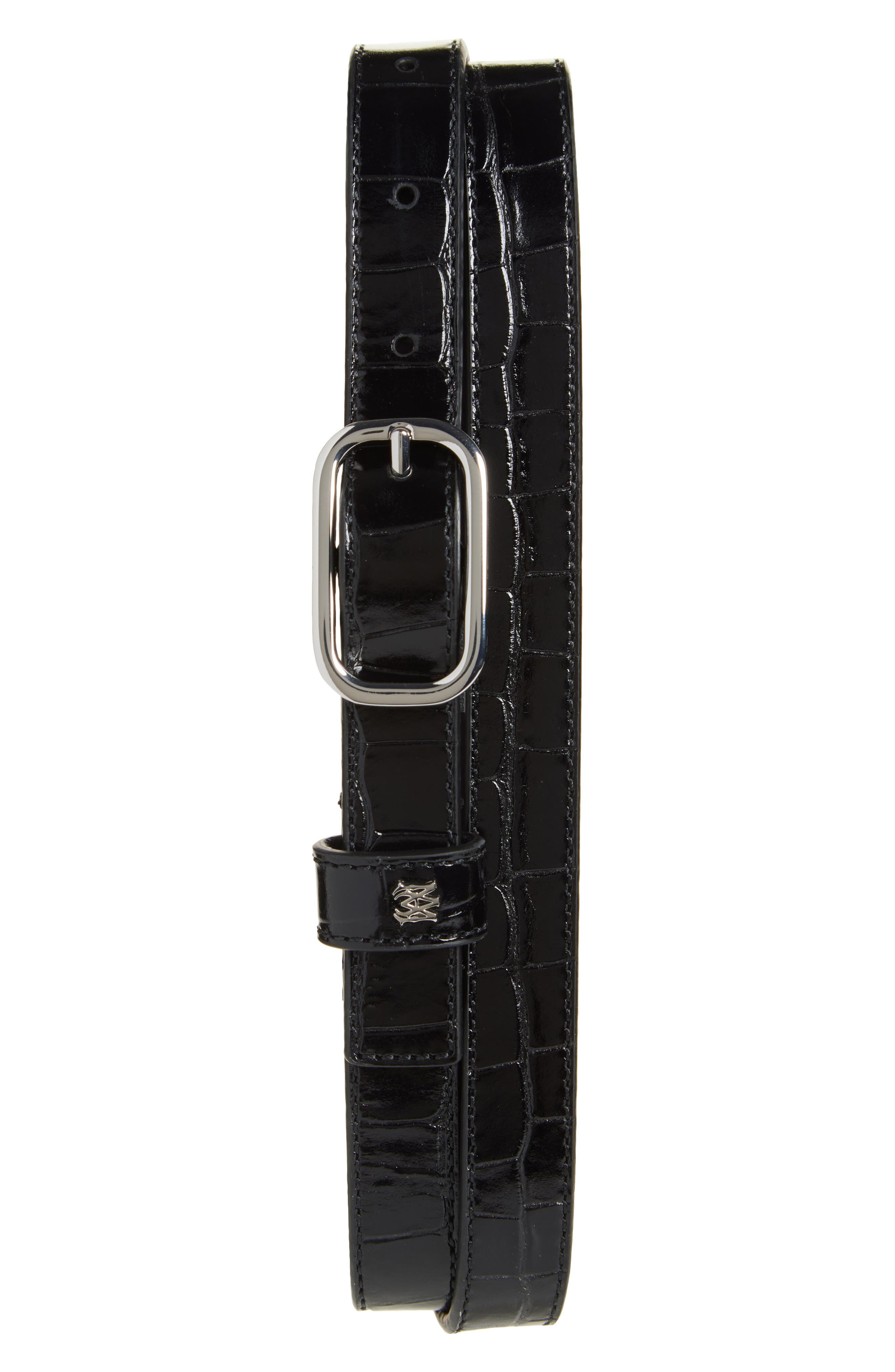 AMIRI Croc Embossed Leather Belt in Black Nickel at Nordstrom