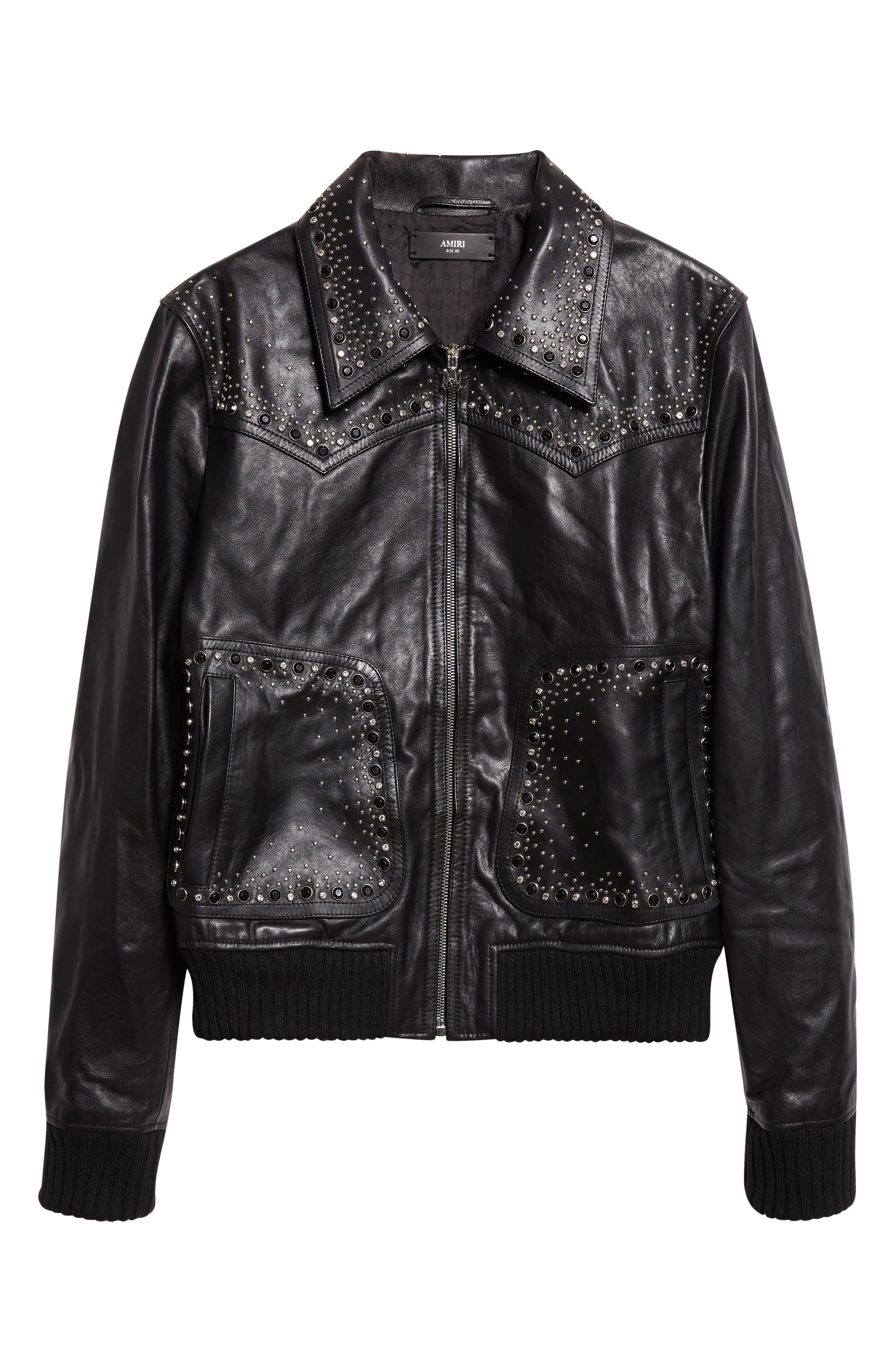AMIRI Crystal Embellished Leather Western Jacket in Black at Nordstrom