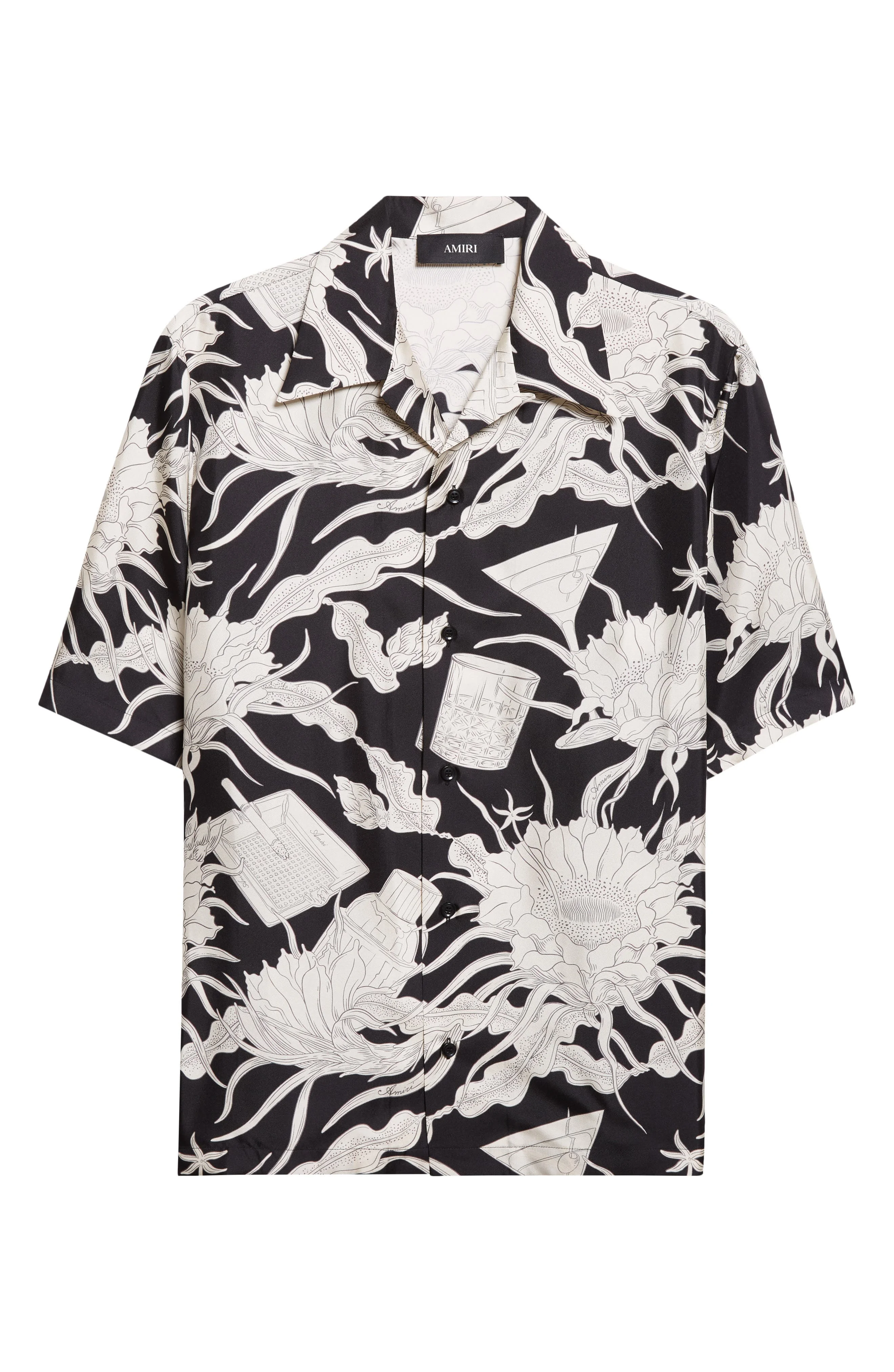 AMIRI Floral Silk Bowling Shirt in Black at Nordstrom