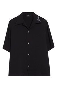 AMIRI Logo Embroidered Camp Shirt in Black at Nordstrom
