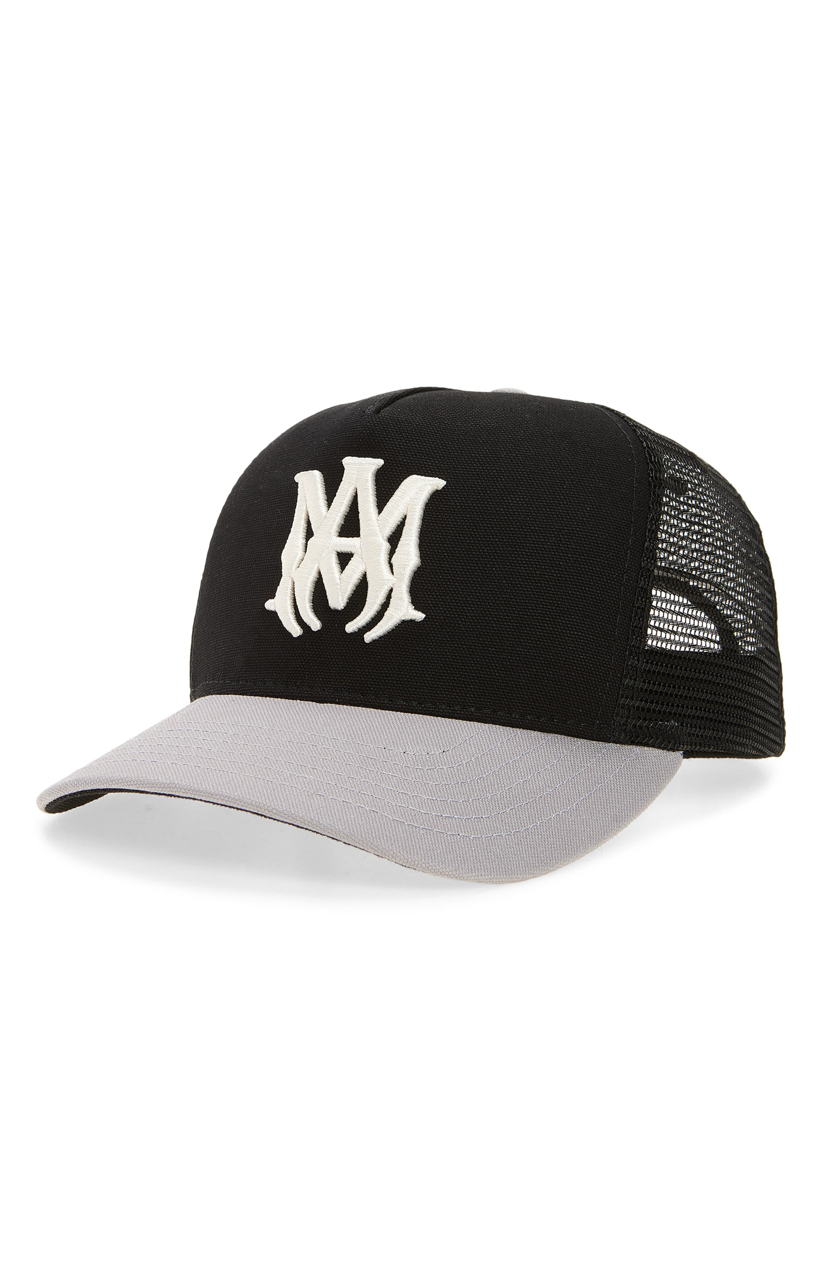 AMIRI MA Outline Embroidered Canvas Trucker Hat in Black at Nordstrom