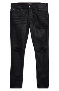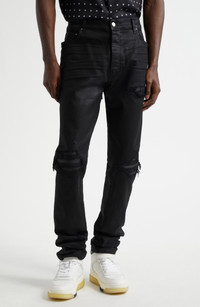 AMIRI MX1 Leather Patched Distressed Waxed Jeans in Black at Nordstrom