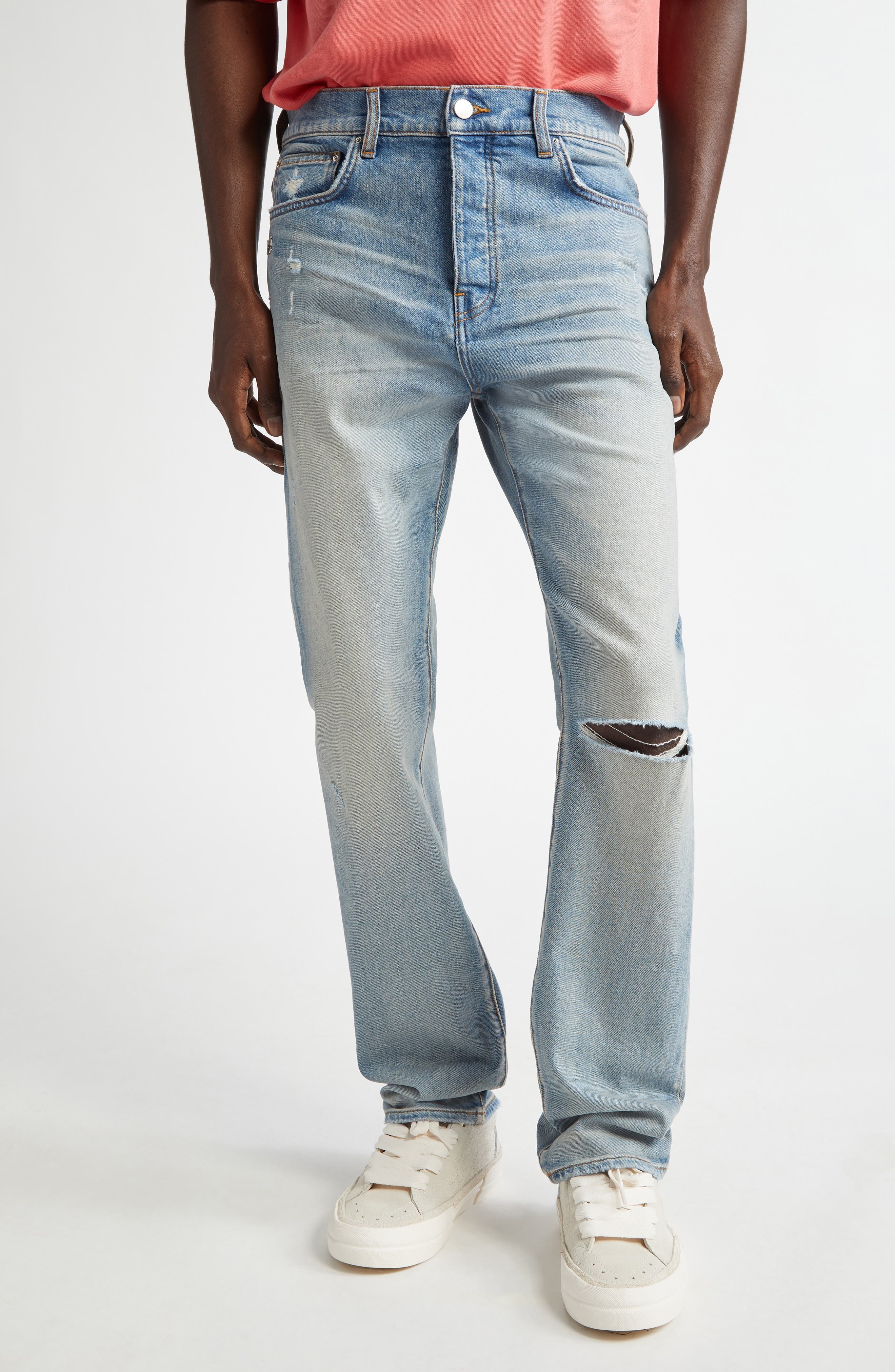 AMIRI Slash Ripped Slim Fit Jeans in Antique Indigo at Nordstrom
