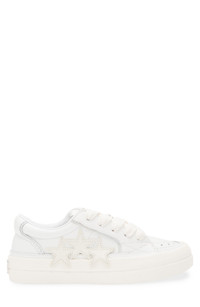 Mike Amiri draws inspiration from Californian skate culture with a low-top sneaker detailed with star-shaped perforations and patches that dip into the midsole. Lace-up style Leather upper/textile lining/rubber sole Imported Designer Shoes
