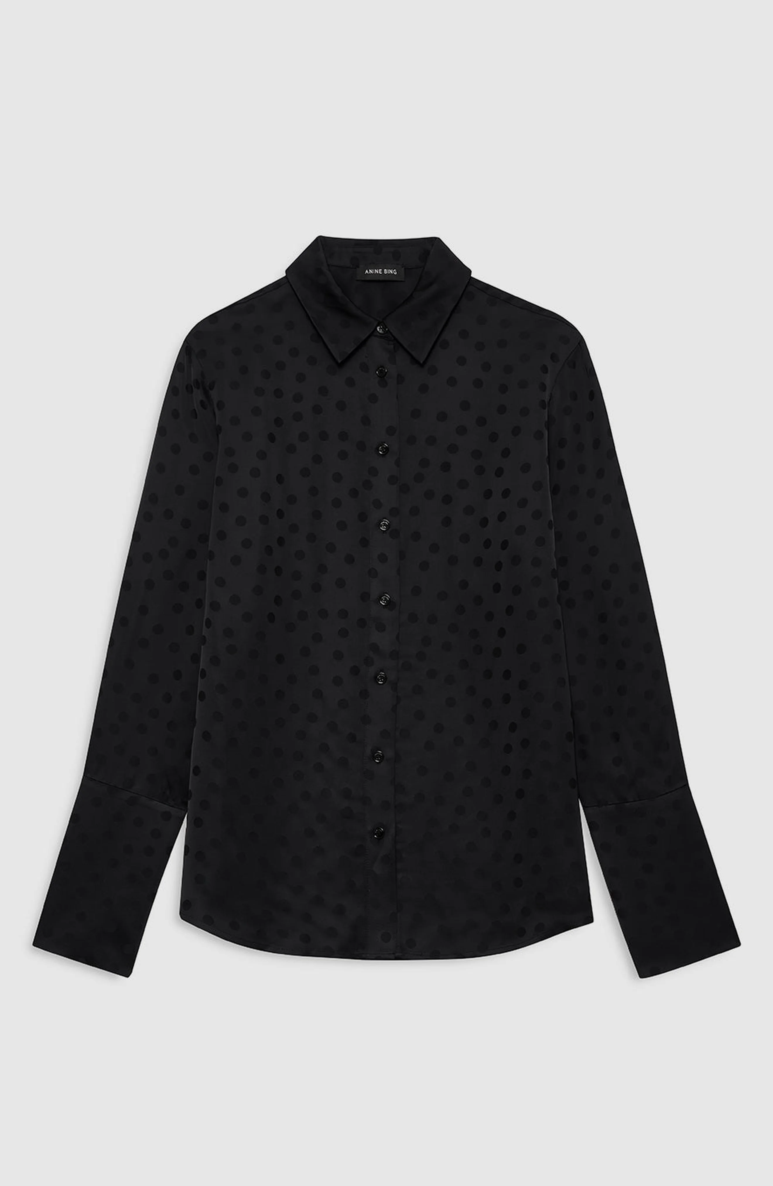 ANINE BING Amanda Dot Jacquard Blouse in Black Dot Jacquard at Nordstrom