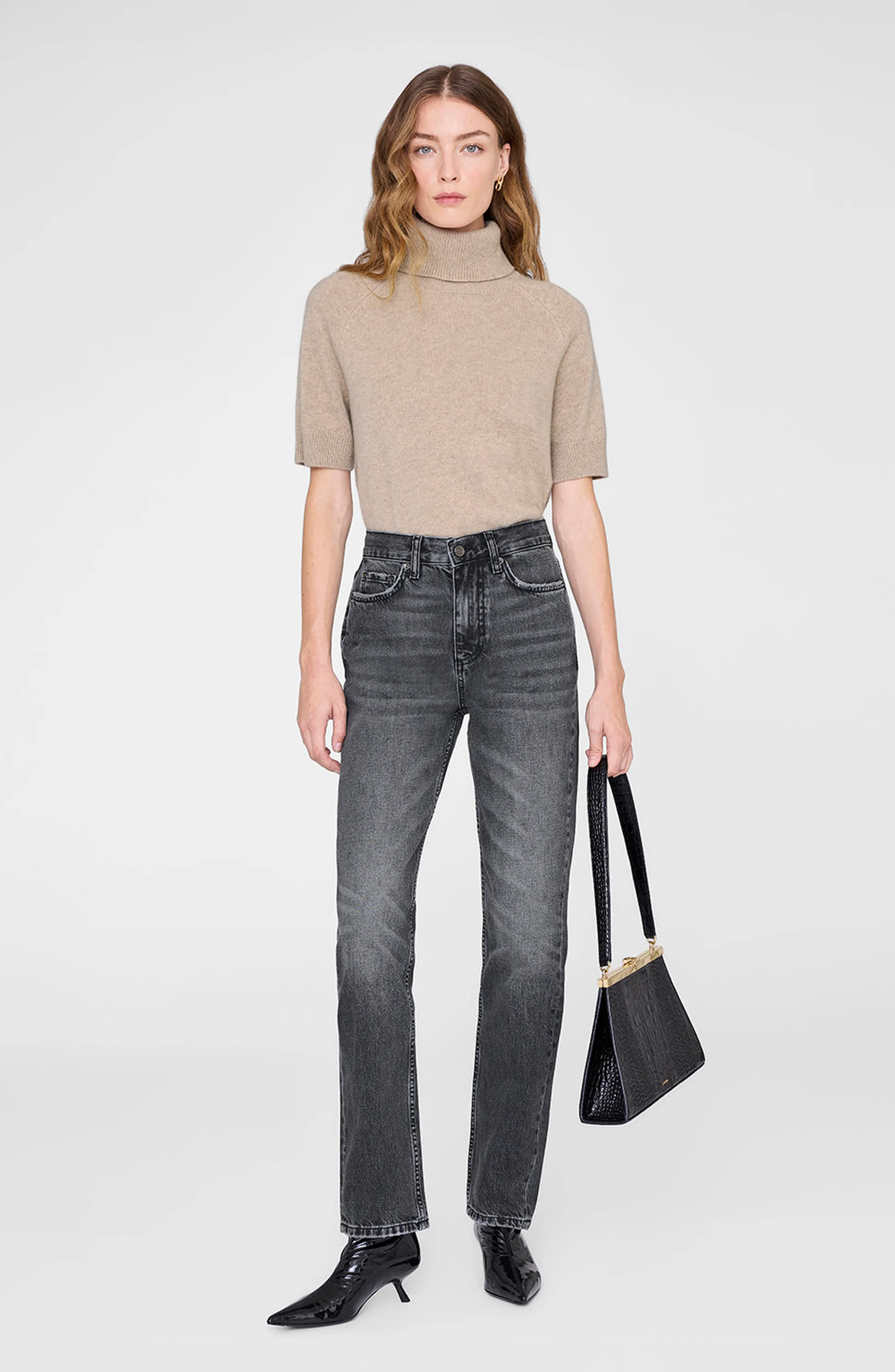 ANINE BING Jackson Turtleneck Sweater in Stone Melange at Nordstrom