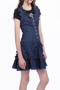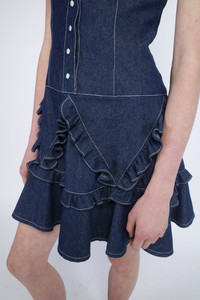 Classic denim meets sweet ruffles in our 100% cotton Denim Ruffle Dress. This charming piece features a front button closure and adorable ruffles, making it the perfect blend of comfort and style. A must-have addition to any wardrobe! Denim Fabric: 100% Cotton Hydrocarbon Dry Clean Only Made with love in NYC