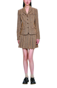 Structured and sophisticated, the Herringbone Jacket features a timeless pattern and a sharp, tailored fit. A wardrobe essential that effortlessly elevates both professional and casual looks. Caramel Fabric: 30% Polyester, 20% Cotton, 20% Wool, 20% Acrylic, 10% Silk Hydrocarbon Dry Clean Only Made with love in NYC