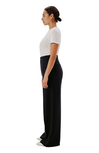 Our instant-classic wide leg pant in seasonless, double-faced wool. Cut in a universally flattering, easy-to-wear shape, its supple knitted texture moves effortlessly along the body, maintaining clean lines. Pair with the Doppio Jacket to complete the ensemble, or with the T-shirt for an everyday look.We have visited our wool-supplying farms to ensure that their sheep are raised and sheared in exemplary conditions, free of the cruel practice of mulesing. The fabric is processed and finished in an Italian facility that runs on 100% renewable energy. The addition of elastane helps to improve strength and performance, helping to extend the garment's lifetime. 96% Super-fine ethical merino wool, 4% elastane Unlined Side pockets, back welt pockets Zipper fly, button and hook fastening Dry clean sparingly