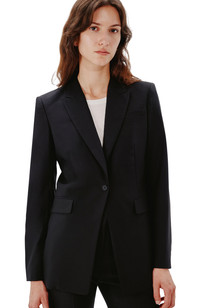 This classic single-button blazer features a peaked lapel and is nipped at the waist to add shape to the silhouette. Soft to the touch and seasonless, our custom-crafted merino wool is traceable to the farm.We have visited our wool-supplying farms to ensure that their sheep are raised and sheared in exemplary conditions, free of the cruel practice of mulesing. The fibers for this garment come from a farm in New South Wales. The fabric is processed and finished in an Italian facility that runs on 100% renewable energy. Adding a small amount of elastane to the garment improves strength and performance, helping to extend the piece's lifetime. 100% Super-fine ethical merino wool Cupro stretch lining (92% cupro, 8% elastane) Shoulder pads (non-removable) Functional four-button cuffs Breast pocket; interior waist pocket Dry clean sparingly