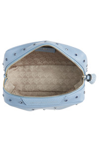 The queen of organization makes sure all your little important things—whatever they may be—are easily accessible in this aptly labeled calfskin-leather pouch that sparkles with a grid of crystal studs. 4" x 6" x 2" Top zip closure Logo-jacquard lining Leather Imported Designer Handbags