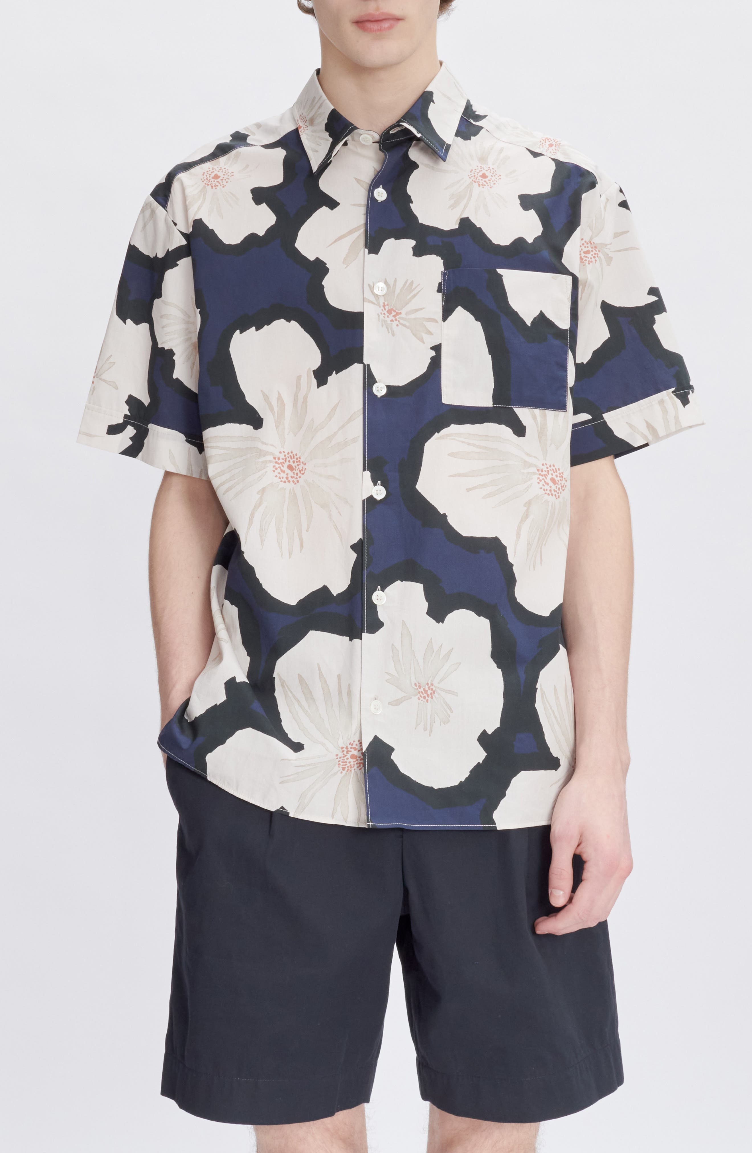A.P.C. Ross Floral Short Sleeve Button-Up Shirt in Iak Dark Navy at Nordstrom