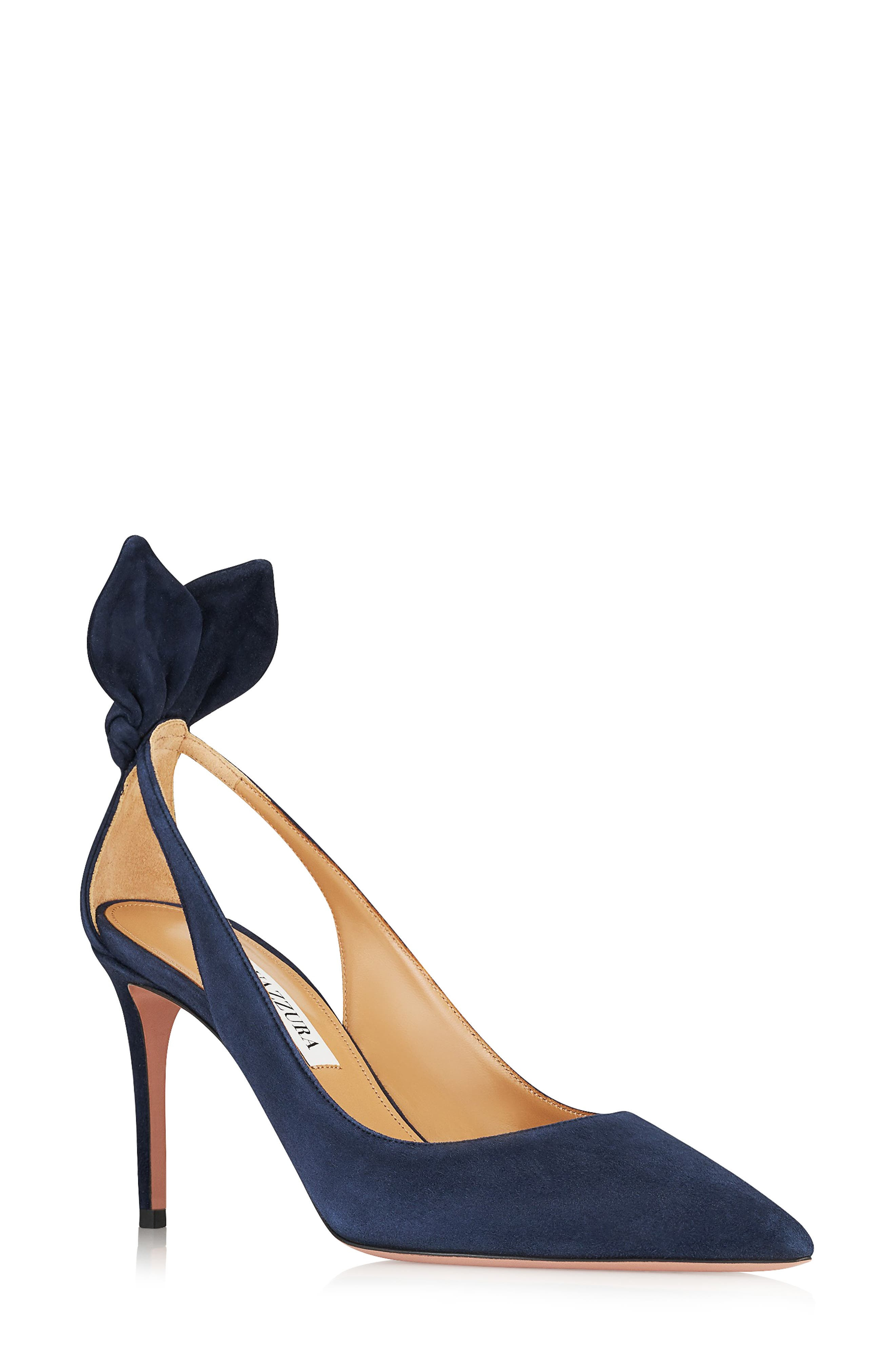 Aquazzura Bow Tie Pointed Toe Pump in Mezzanotte at Nordstrom