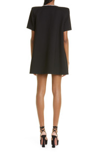 Signature crystals sparkle along the deeply cut V-neckline of this T-shirt minidress cut in an oversized silhouette with strong shoulders. 32" length (size Medium) Deep V-neck Short sleeves 67% rayon, 28% nylon, 5% spandex Dry clean Imported Women's Designer Clothing