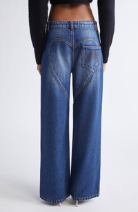 The New York label's signature glamour feels a little edgier with glistening crystals tracing the frayed cutouts on wide-leg jeans made from nonstretch denim. A heart seam arches across the back, another telltale sign that these are Area jeans. Zip fly with button closure Front scoop pockets; coin pocket; back patch pocket 100% cotton Dry clean Made in Italy Designer Clothing