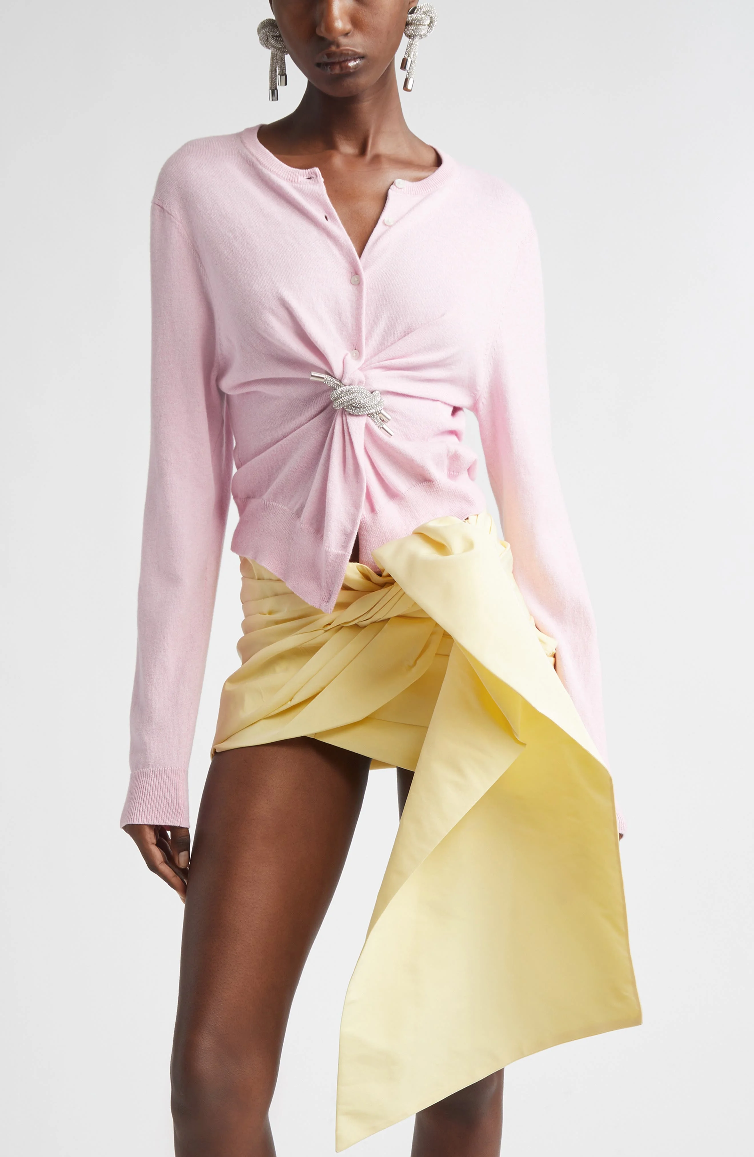 Area Crystal Knot Cotton & Cashmere Cardigan in Pastel Pink at Nordstrom