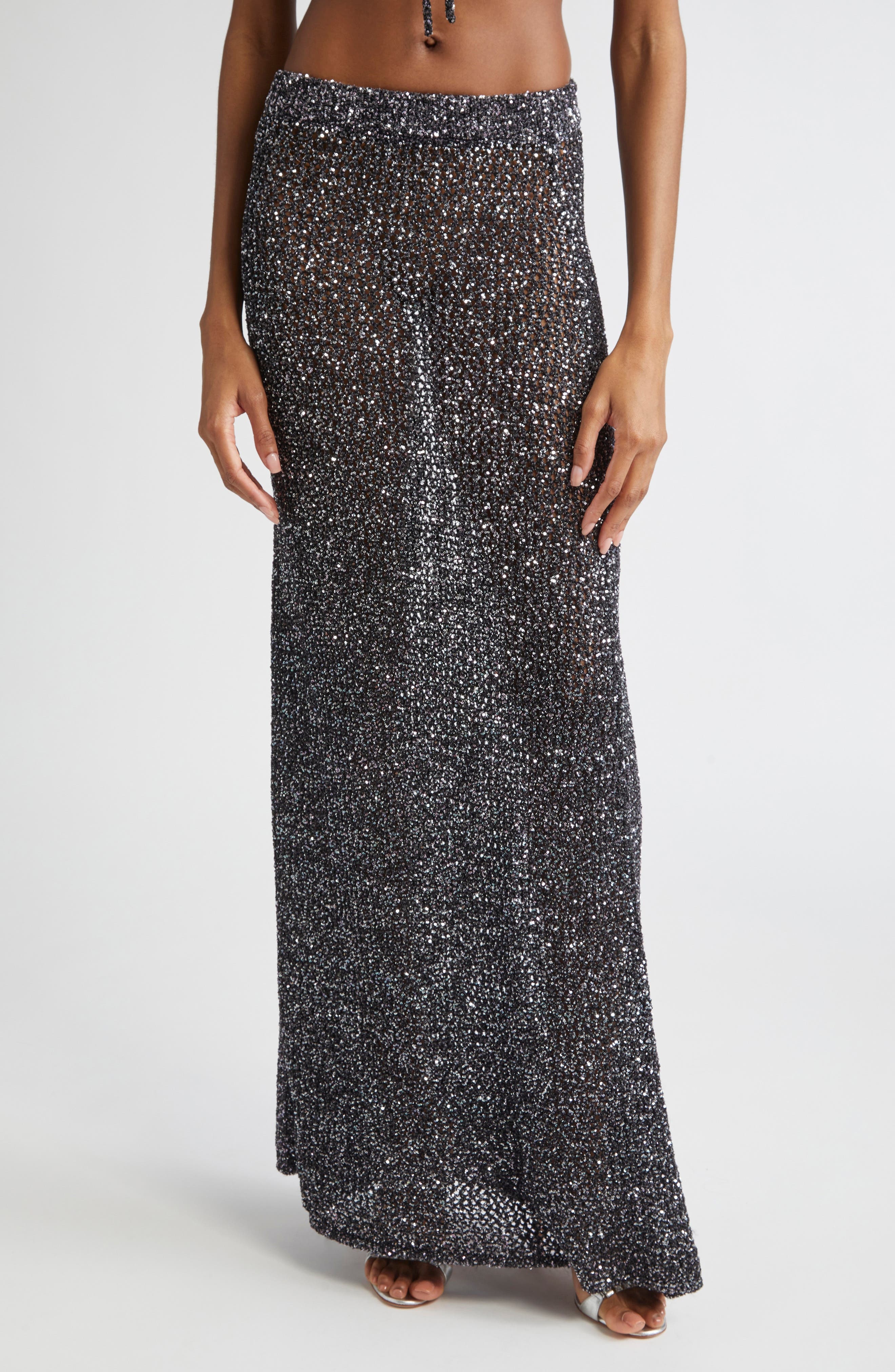Area Sequin Crochet Maxi Skirt in Black at Nordstrom