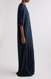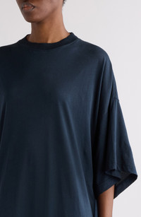 Leave it to Demna to turn a T-shirt dress into a statement. Take, for example, this lightweight jersey version that revisits the maison's dramatic cocoon shape—a nod to the exaggerated tailoring of master courtier Cristobal Balenciaga. Crewneck Elbow-length sleeves Dropped shoulders 100% cotton Machine wash, dry flat Made in Portugal Designer Clothing