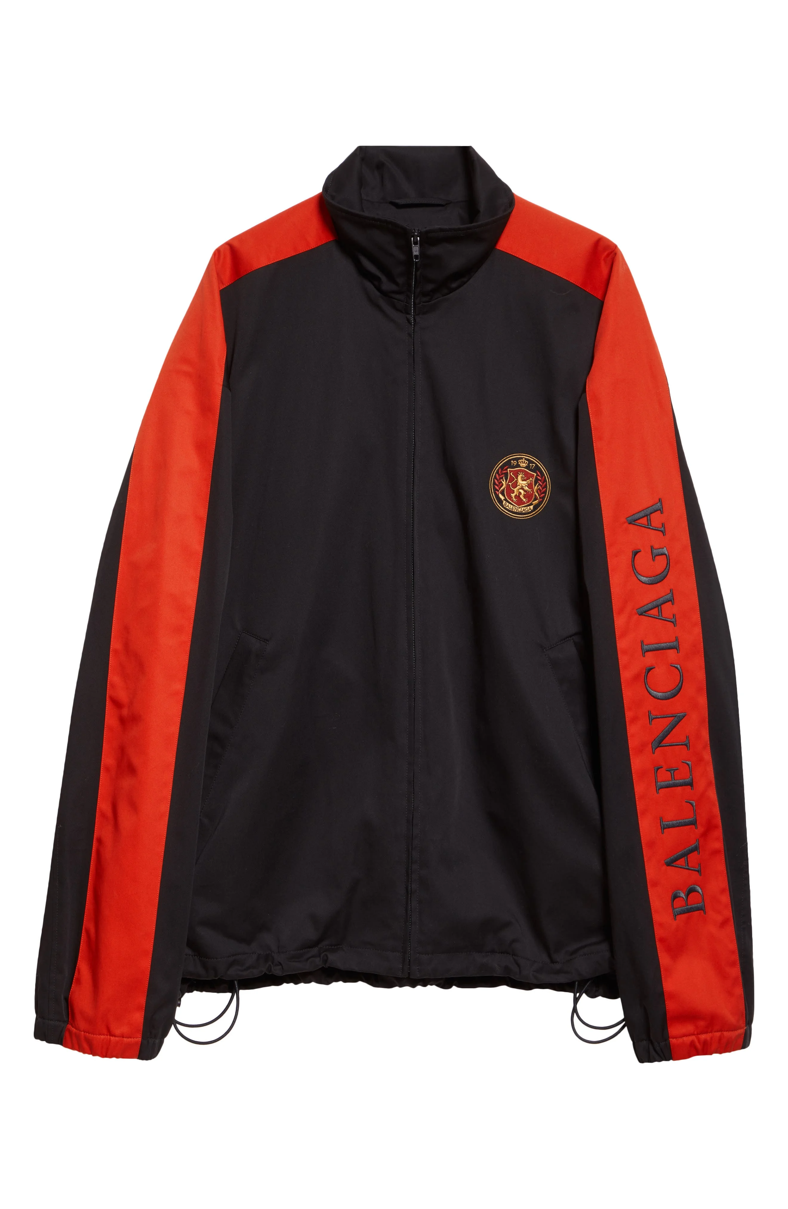 Balenciaga Embroidered Crest Track Jacket in 1000 Black at Nordstrom