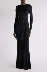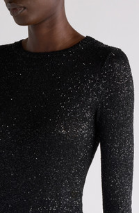 Comfort and glamour fuse to fabulous effect in this figure-skimming crewneck sweater decorated in dazzling sequins—a nod to the shimmering skylines of Shanghai, the backdrop for the spring '25 collection. Crewneck Long sleeves Ribbed cuffs and hem 100% polyamide, with 100% polyester sequins Dry clean Made in Italy Designer Clothing