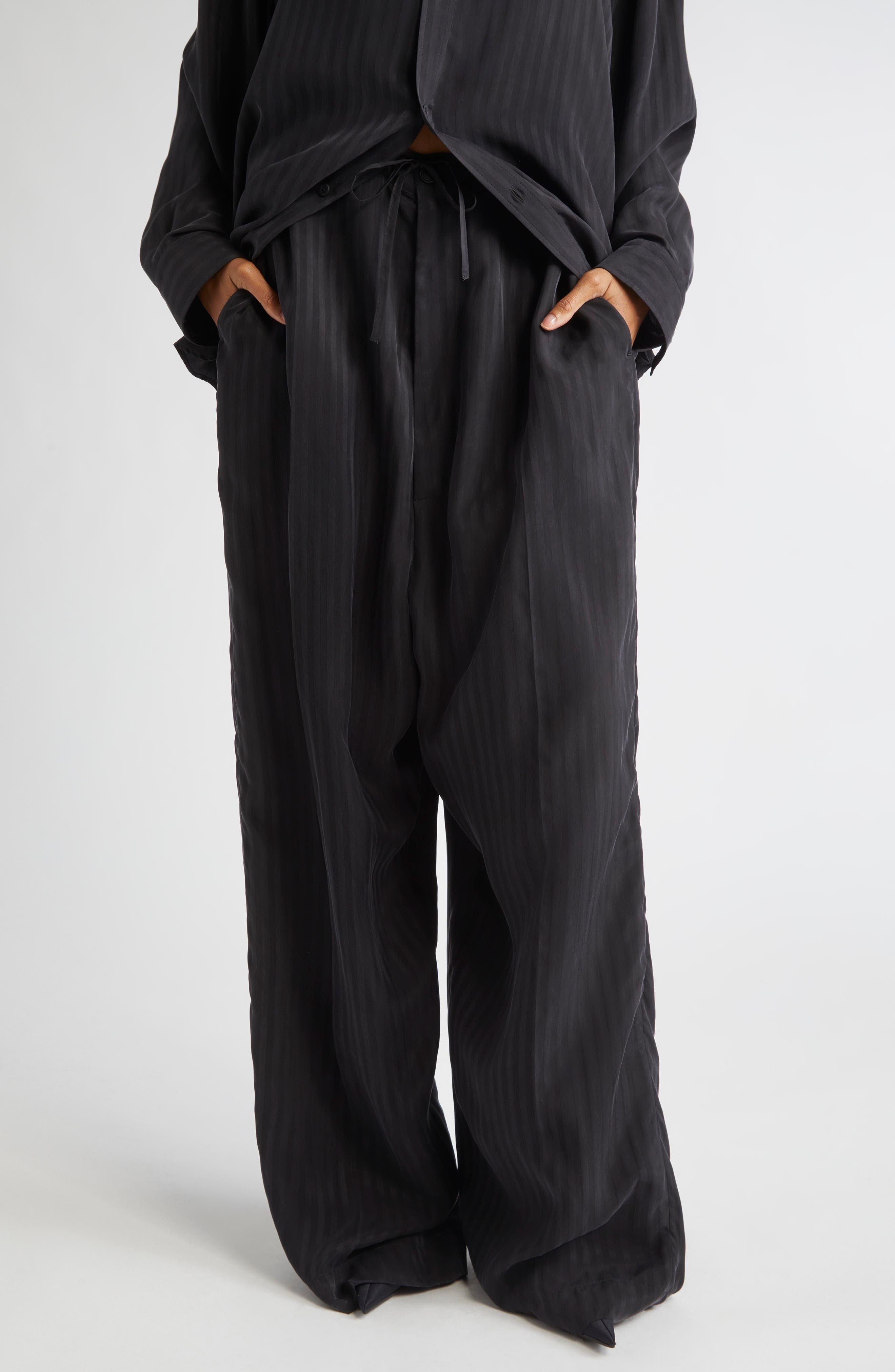 Balenciaga Fluid Cupro Tailored Pants in 1000 Black at Nordstrom